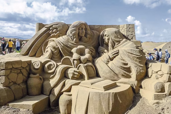 Nacimientos de arena asombran a visitantes y expresan la fe en Navidad