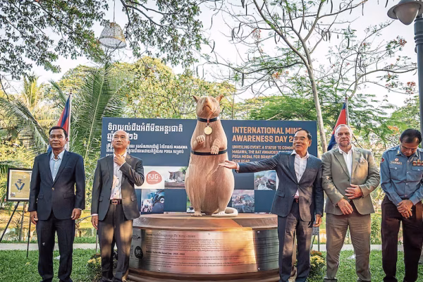 Camboya inauguró la primera estatua del mundo dedicada a Magawa, una rata gigante africana condecorada el 2020 por salvar vidas humanas al detectar con su olfato más de 100 minas antipersona y explosivos. La escultura, tallada por artesanos locales, muestra al roedor con su arnés y la medalla de oro al valor, reconociendo su labor…
